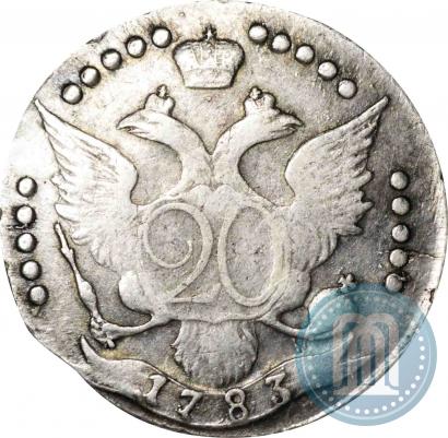 20 копеек 1783 года СПБ . Серебро. Гурт шнур влево. Петров - 1 руб., Конрос # 142/10