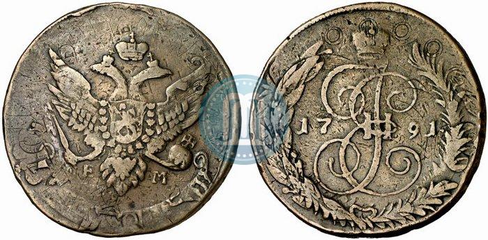 Фото 5 копеек 1791 года ЕМ "Павловский перечекан"