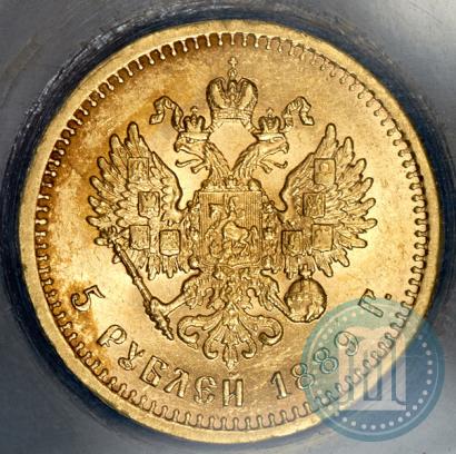 5 рублей 1889 года (АГ) . Золото. Гурт надпись. Конрос # 19/14
