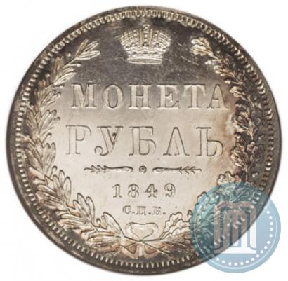 1 рубль 1849 года СПБ-ПА . Св. Георгий без плаща. Серебро. Гурт надпись. Петров - нет руб., Конрос # 79/110