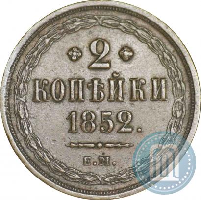 2 копейки 1852 года ЕМ . Медь. Гурт гладкий. Конрос # 201/6