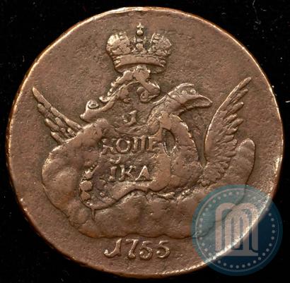 1 копейка 1755 года СПБ . Медь. Гурт сетчатый. Биткин # 532 (R), Петров - 1 руб., Конрос # 206/3