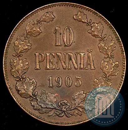 10 пенни 1905 года . Медь. Гурт гладкий. Конрос # 487/15