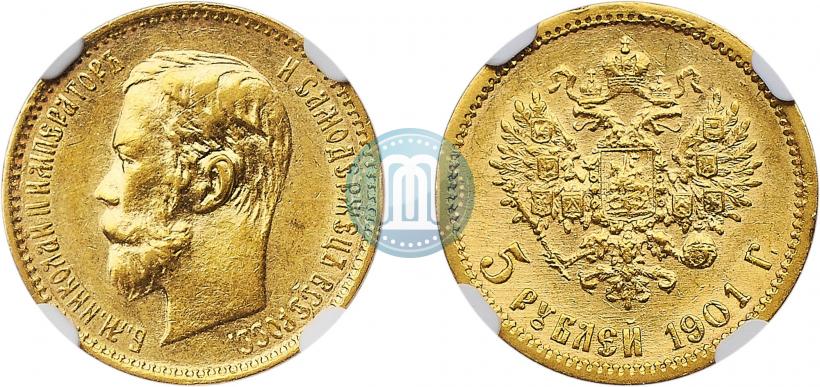 5 рублей 1901 года (АР) . Золото. Гурт узорчатый. Конрос # 20/11
