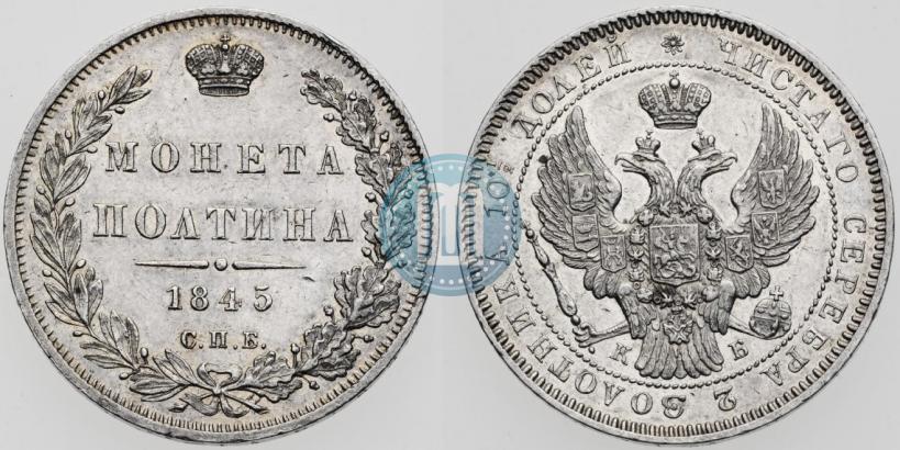 Полтина 1845 года СПБ-КБ . Серебро. Гурт надпись. Петров - 0,75 руб., Конрос # 118/31