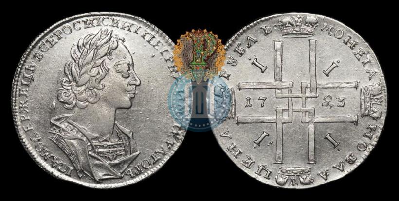 1 рубль 1723 года "Портрет в античных доспехах". Серебро. Гурт надпись.