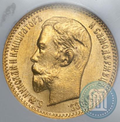 5 рублей 1904 года (АР) . Золото. Гурт узорчатый. Конрос # 20/14