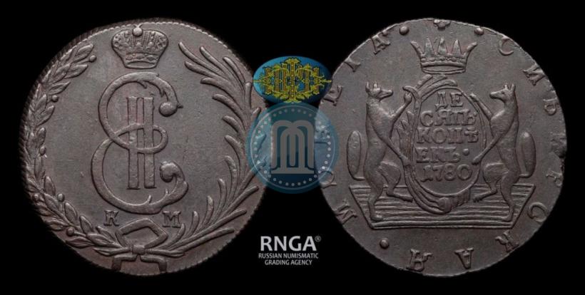 10 копеек 1780 года КМ . Медь. Гурт шнур влево. Петров - 1 руб., Конрос # 174/18