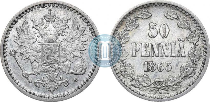 50 пенни 1865 года S . Серебро. Гурт рубчатый. Конрос # 485/2
