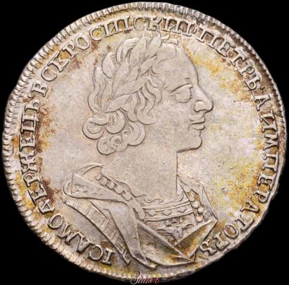 1 рубль 1724 года "Портрет в античных доспехах". Серебро. Гурт надпись.