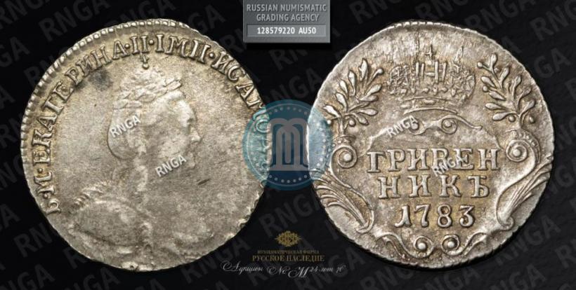 Гривенник 1783 года СПБ . Серебро. Гурт шнур влево. Петров - 0,75 руб., Конрос # 156/10