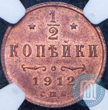 1/2 копейки 1912 года СПБ . Медь. Гурт рубчатый. Конрос # 231/61