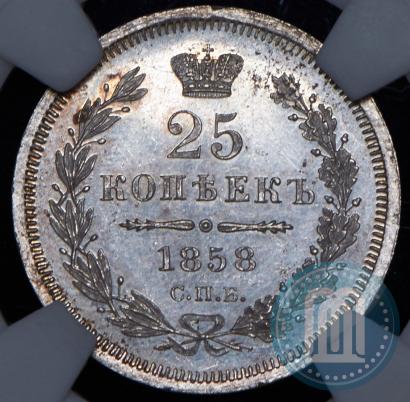 25 копеек 1858 года СПБ-ФБ . Серебро. Гурт пунктир. Конрос # 137/54