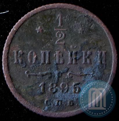 1/2 копейки 1895 года СПБ . Особый вензель, вверху три завитка. Медь. Гурт рубчатый. Биткин # 267 (R2)
