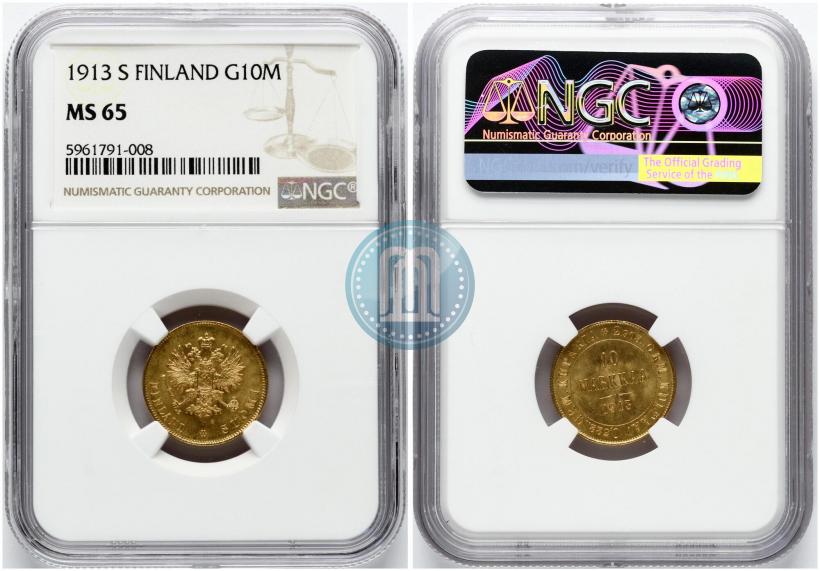 10 марок 1913 года S . Золото. Гурт рубчатый. Конрос # 482/8
