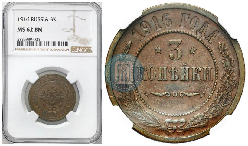 3 копейки 1915 года . Медь. Гурт рубчатый. Конрос # 190/49