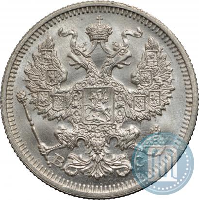 20 копеек 1915 года ВС . Серебро. Гурт рубчатый. Конрос # 146/92