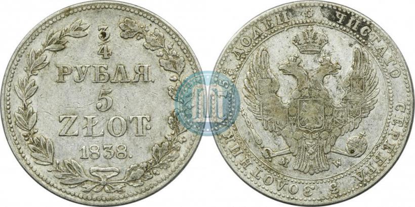 Цена 3/4 рубля - 5 злотых 1838 года MW