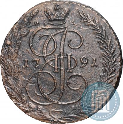 5 копеек 1791 года ЕМ . Медь. Гурт сетчатый. Конрос # 180/65