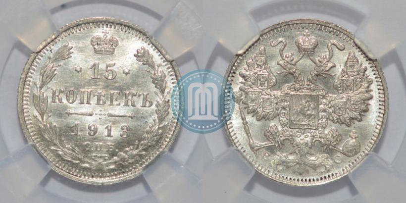 15 копеек 1913 года СПБ-ВС . Серебро. Гурт рубчатый. Конрос # 149/79