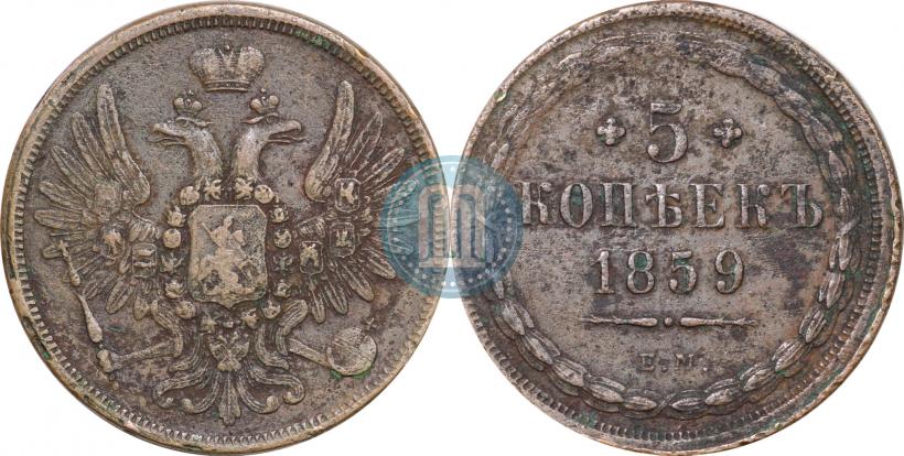 5 копеек 1858 года ЕМ "Тип 1849-1857". Медь. Гурт гладкий. Конрос # 184/15