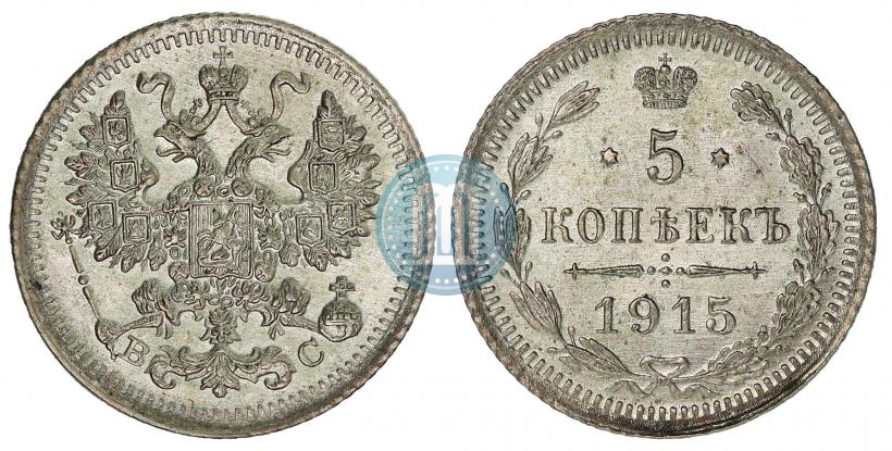 5 копеек 1915 года ВС . Серебро. Гурт рубчатый. Конрос # 170/80