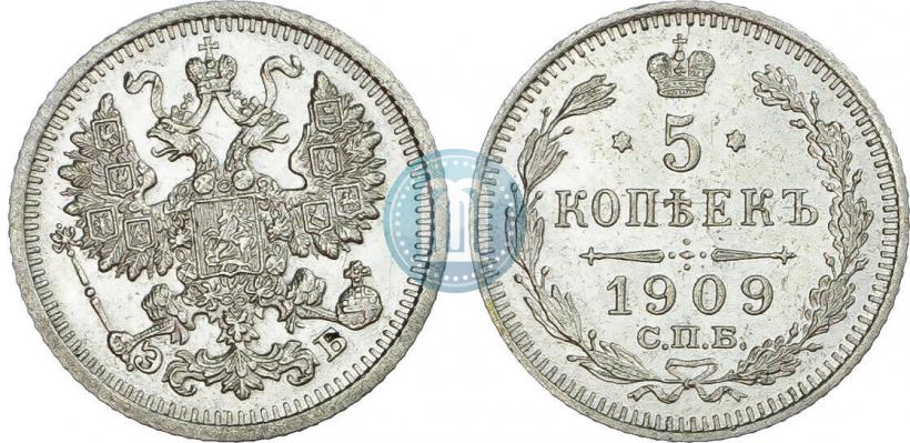Все цены на 5 копеек 1909 года СПБ-ЭБ