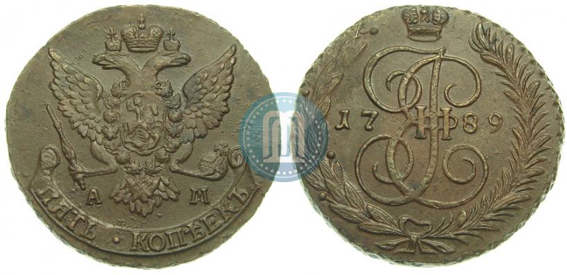 5 копеек 1789 года АМ . Медь. Гурт сетчатый. Петров - 0,5 руб., Конрос # 180/130