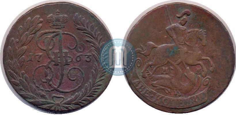 2 копейки 1763 года ММ . Медь. Гурт сетчатый. Конрос # 193/1