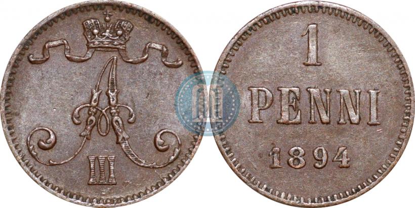 1 пенни 1894 года . Медь. Гурт гладкий. Конрос # 489/21
