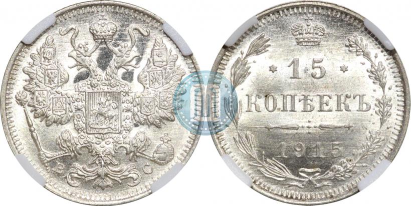 15 копеек 1915 года ВС . Серебро. Гурт рубчатый. Конрос # 149/81