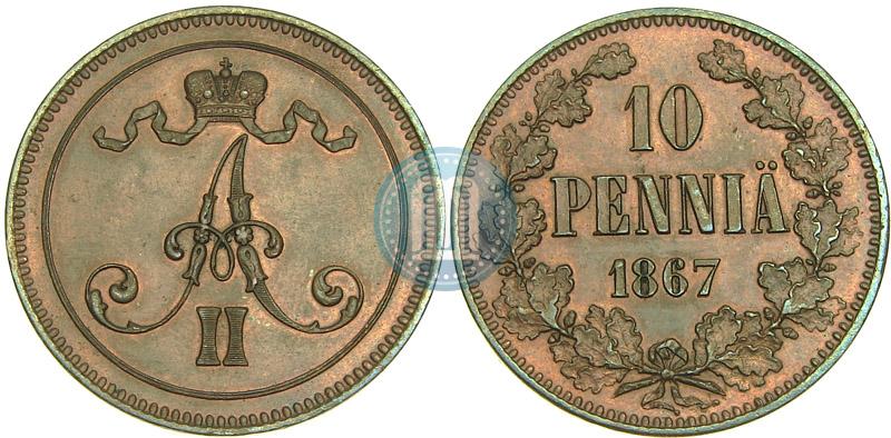 10 пенни 1867 года . Медь. Гурт гладкий. Конрос # 487/3