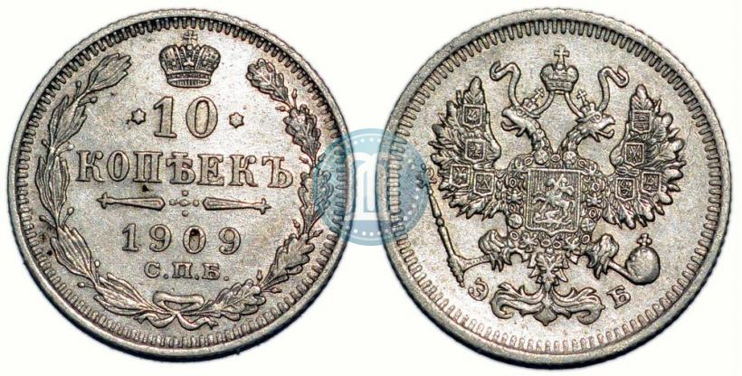 Цена 10 копеек 1909 года СПБ-ЭБ