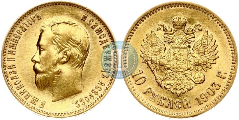 10 рублей 1903 года (АР) . Золото. Гурт надпись. Конрос # 8/9
