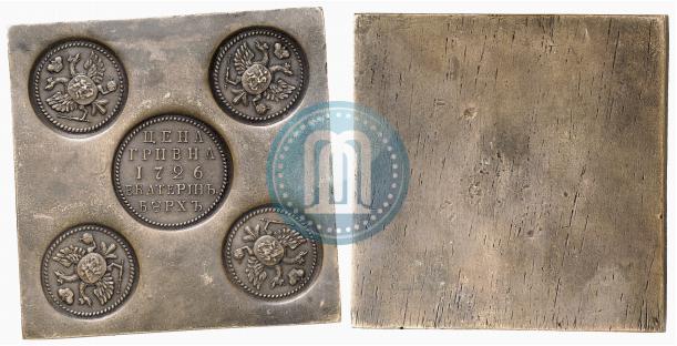 Гривна 1726 года ЕКАТЕРIНЬБУРХЬ "Медная плата". НОВОДЕЛ. На груди орла щит со св. Георгием. Медь. Гурт гладкий. Биткин # 345 (R2, R3)
