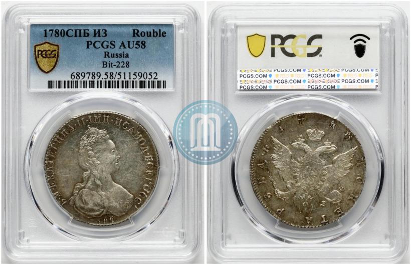 1 рубль 1780 года СПБ-ИЗ . Серебро. Гурт шнур влево. Петров - 2,5 руб., Конрос # 71/5