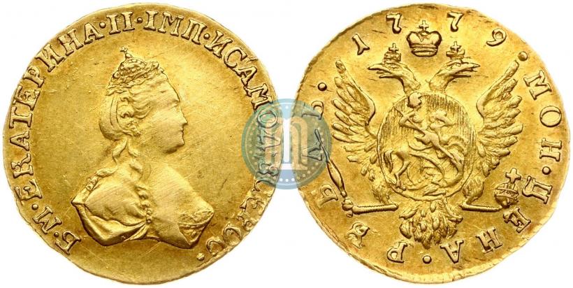1 рубль 1779 года . Золото. Гурт шнур влево. Биткин # 115 (R), Петров - 3 руб., Конрос # 34/30