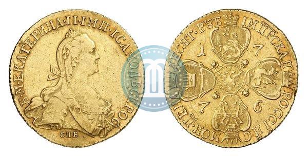 10 рублей 1776 года СПБ . Золото. Гурт шнур влево. Биткин # 32 (R), Петров - 22 руб., Ильин - 20 руб., Конрос # 4/23