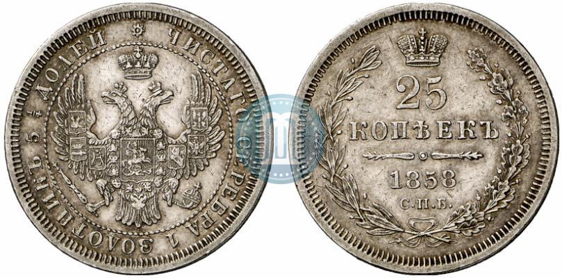 Фото 25 копеек 1858 года СПБ