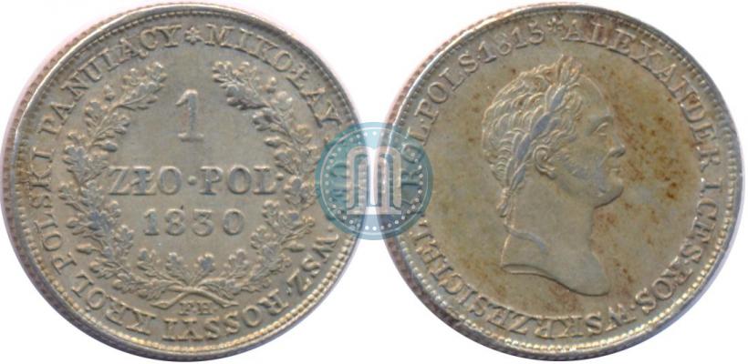 1 злотый 1830 года FH . Серебро. Гурт рубчатый. Петров - 0,75 руб., Конрос # 465/23