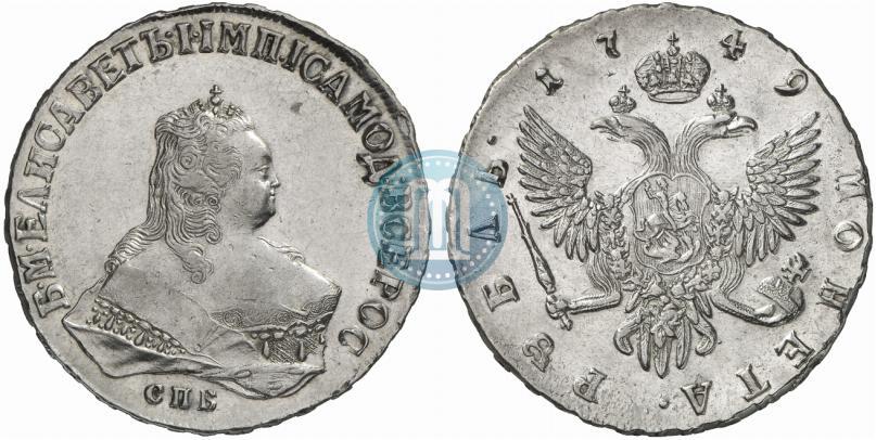 1 рубль 1749 года СПБ . Серебро. Гурт надпись. Петров - 2,5 руб., Конрос # 64/13