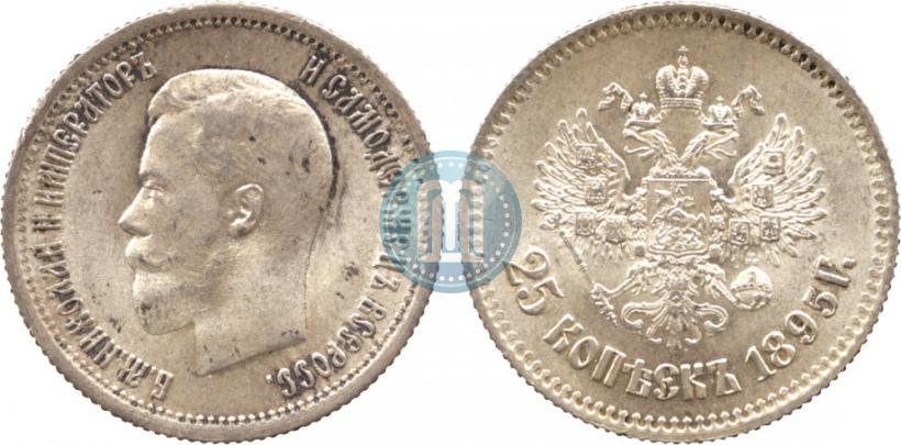 25 копеек 1895 года . Серебро. Гурт рубчатый. Конрос # 140/1