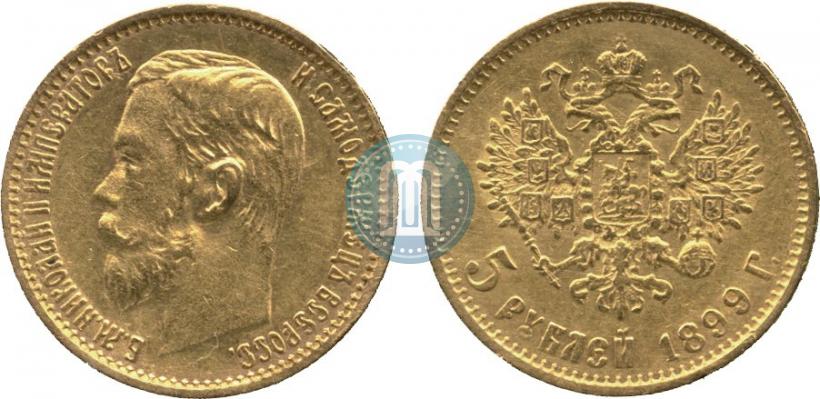 5 рублей 1899 года (ФЗ) . Золото. Гурт узорчатый. Петров - нет руб., Конрос # 20/7