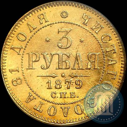 3 рубля 1879 года СПБ-НФ . Золото. Гурт пунктир. Биткин # 42 (R2), Конрос # 21/12