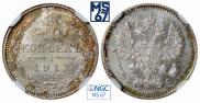В таблице показаны цены на царскую монету 10 копеек 1913 года СПБ-ВС выполненной из серебра. Продажи фиксируются на публичных нумизматических аукционах всего мира. Стоимость продажи указана без учета комиссионного вознаграждения аукциона.