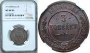 Согласно аукционным продажам, средняя цена данной николаевской монеты на 22 декабря 2025 составляет - 4600 рублей для регулярного чеканаи 55000 рублей для монет отчеканенных по технологии ПРУФ. Самый дорогой экземпляр, выставлялся 06 января 2014 года в Нью-Йорке на американском аукционе Heritage Auction Galleries, лот номер 24999. На торгах стоимость достигла 1700 долларов США. Для медных 3 копеек 1915 года - это является самой высокой ценой на сегодняшний день.