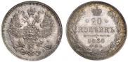 Согласно аукционным продажам, средняя цена данной монеты на 22 декабря 2025 составляет - 9000 рублей для регулярного чекана. Самый дорогой экземпляр, выставлялся 20 апреля 2013 года в Москве на российском аукционе Аукционный дом "Русский Нумизматический Дом", лот номер 178. На торгах стоимость достигла 1250 долларов США. Для серебряных 20 копеек 1860 года с буквами СПБ ФБ (Хвост орла широкий. Бант шире) - это является самой высокой ценой на сегодняшний день.