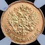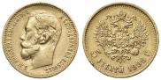 Монета 5 рублей 1898 года (АГ) чеканилась на Санкт-Петербургском монетном дворе во времена Николая 2. Гуртовое оформление в виде узора. Диаметр 18,5 мм, выполнена из золота 900 пробы, имеет вес 4,3 гр. Руководителем производства был Аполлон Грасгоф, о чем свидетельствует знак (АГ) расположенный на гурте. Данные золотые монеты предназначались для денежного обращения на территории Российской Империи.