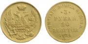 В таблице показаны цены на царскую монету 3 рубля - 20 злотых 1834 года СПБ-ПД выполненной из золота. Продажи фиксируются на публичных нумизматических аукционах всего мира. Стоимость продажи указана без учета комиссионного вознаграждения аукциона.