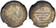 В таблице показаны цены на царскую монету 25 копеек 1858 года СПБ-ФБ выполненной из серебра. Продажи фиксируются на публичных нумизматических аукционах всего мира. Стоимость продажи указана без учета комиссионного вознаграждения аукциона.